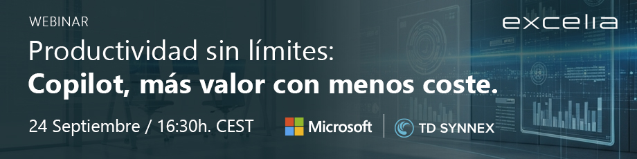 Webinar exclusivo junto a TD SYNNEX donde descubrirás cómo Microsoft Copilot te permite aumentar la productividad de tu empresa, reducir costes y liberar tiempo para que tus equipos se centren en lo estratégico.